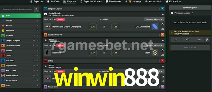 O winwin888 oferece uma grande seleção de opções de apostas em e-sports com probabilidades competitivas